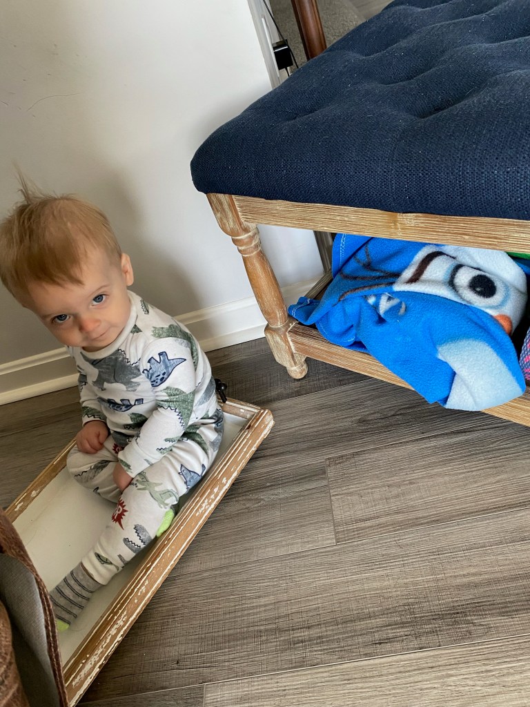My son went to his well visit and got his updated vaccines. Of course, right on track, here comes his fever. Yeah yeah yeah, I have heard 100x that vaccines don’t give fevers. Both of my kids get low grade and my son’s last about 24 hours. Well, he has his low grade fever so cue the round the clock Tylenol. All this and he is teething, so he is being a handsome butt face. He is tired and angry so naturally he throws toys, hits his sister and screams at me. Thank you my boy, I love you too.
